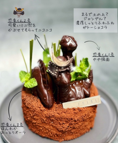 チョコクリームをサンドしています。お子様が大好きな恐竜のケーキが登場。