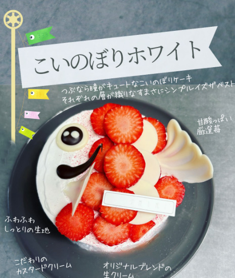 毎年大人気のかわいいこいのぼりのケーキです。
